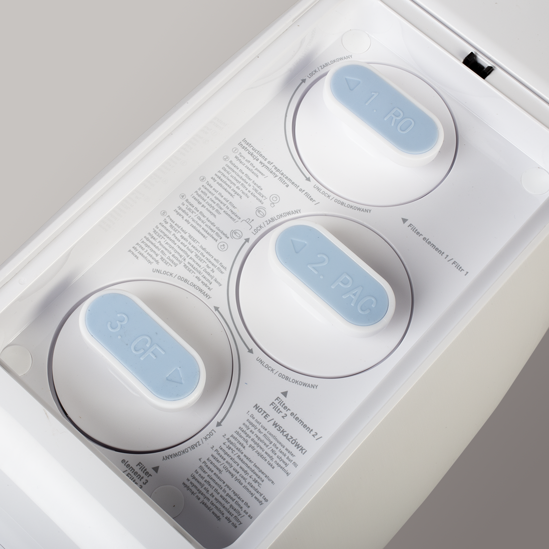 System filtrowania wody oparty jest o jedną z najdoskonalszych technologii filtrowania wody, czyli technologię odwróconej osmozy, która jest powszechnie stosowana przez producentów wody butelkowanej. Pierwszym etapem filtracji jest filtr PAC. Jego zadaniem jest filtrowanie największych cząstek, takich jak piasek, rdza, koloidy czy pozostałości chloru. Dodatkowo pochłania nieprzyjemnie zapachy.