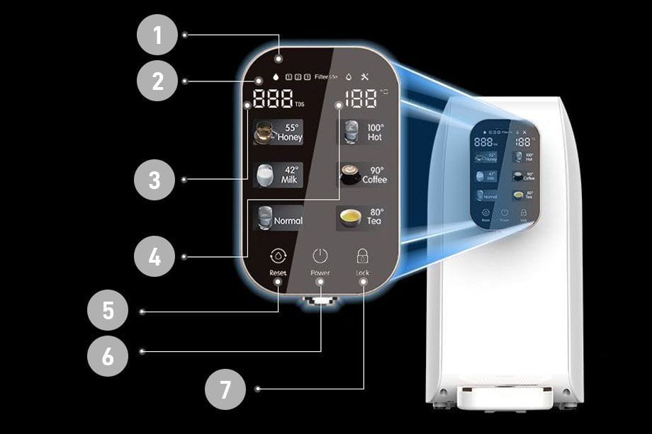 Szybka gotowość do podawania gorącej wody (zaledwie 3 sekundy) to gwarancja natychmiastowego dostępu do przefiltrowanej wody o temperaturze nawet 93°C (±3°C), a przy tym niesamowita oszczędność czasu.