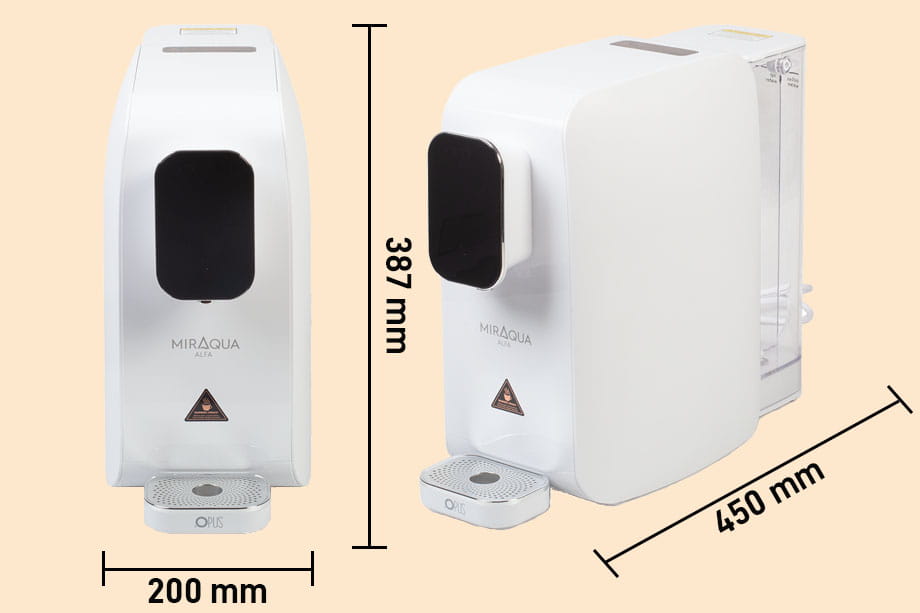 Miraqua ALFA to połączenie najnowocześniejszej technologii i estetycznego designu. Ergonomiczna obudowa sprawia, że dystrybutor nie zajmuje dużo przestrzeni i z pewnością znajdzie swoje miejsce nawet w małej kuchni.