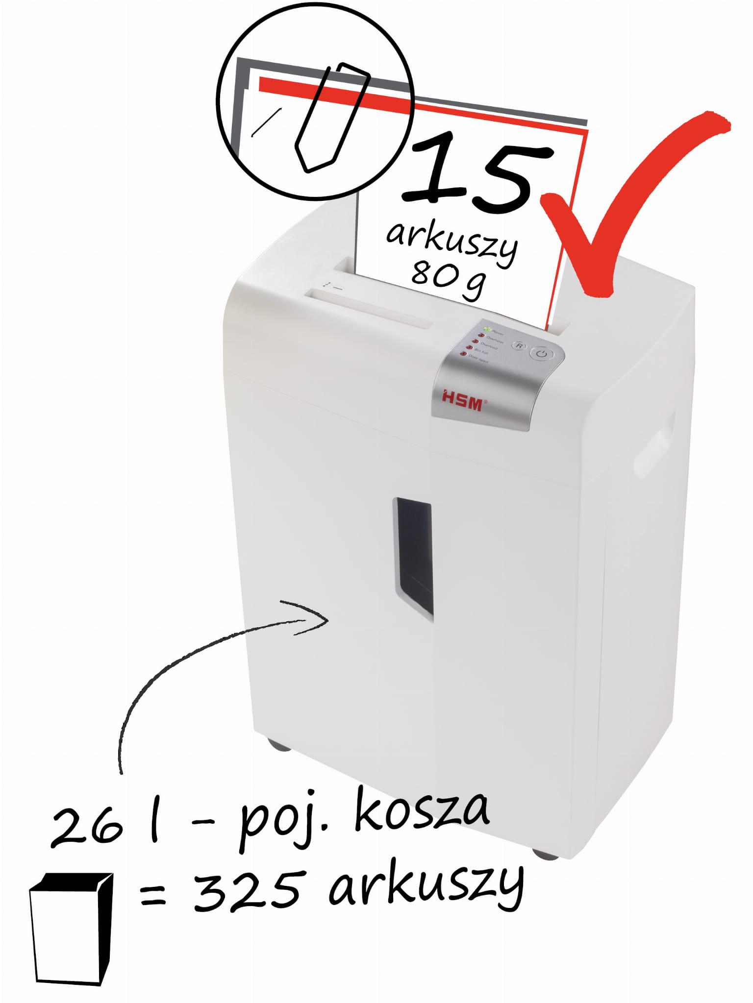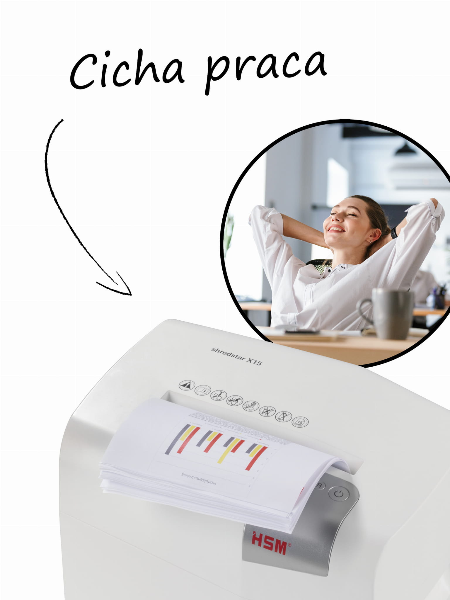 Najbardziej zaawansowany model z serii HSM shredstar, dodatkowo wyposażony w kółka. Cicha i wysokowydajna. Dzięki cięciu na ścinki zwiększa ochronę danych w miejscu pracy. Wyposażona w funkcję zapobiegania zacięciu papieru. Rekomendowana do użytku przez grupę do 5 osób.