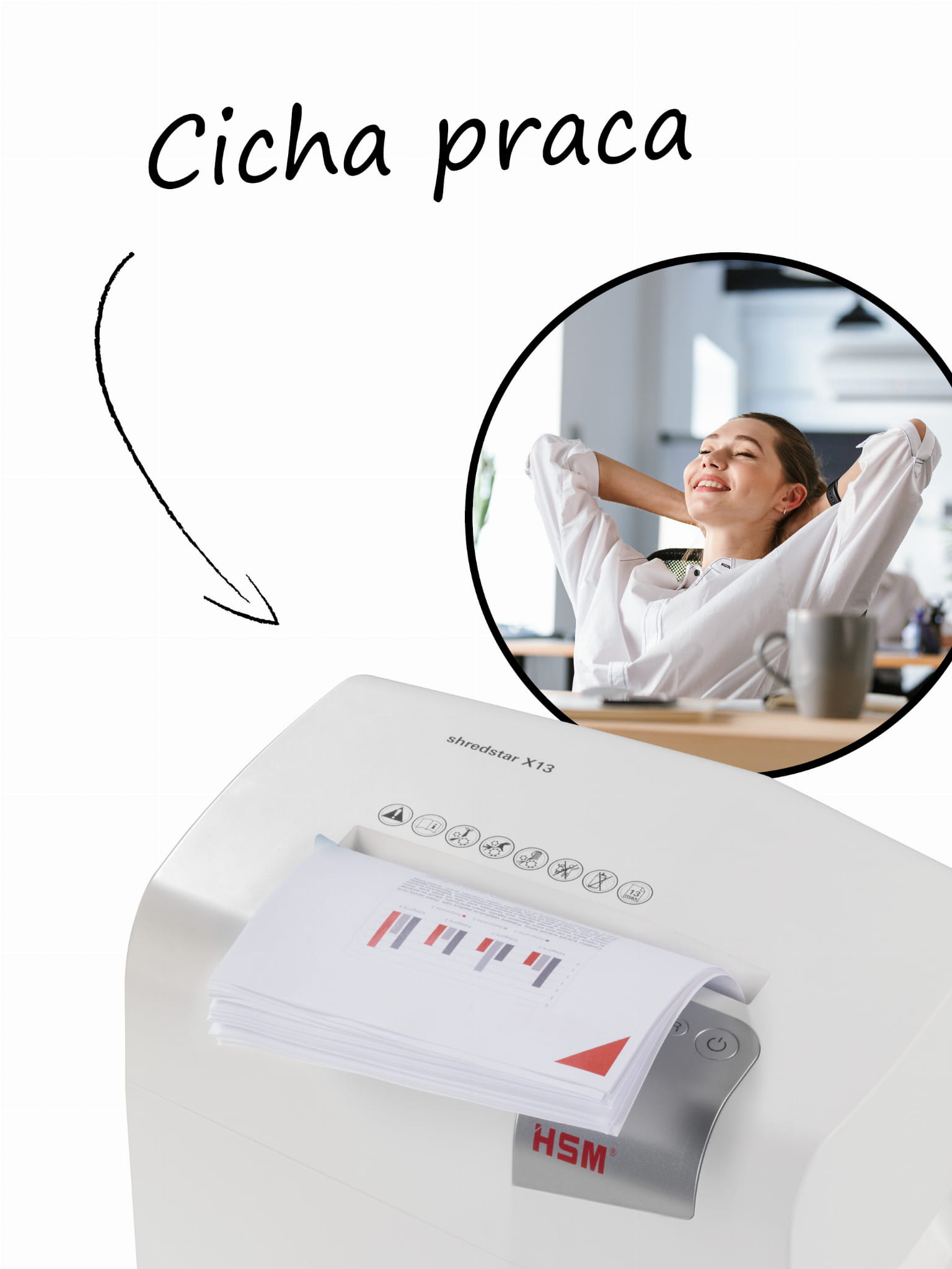 - Cicha praca urządzenia zapewnia minimalny poziom hałasu w miejscu pracy.