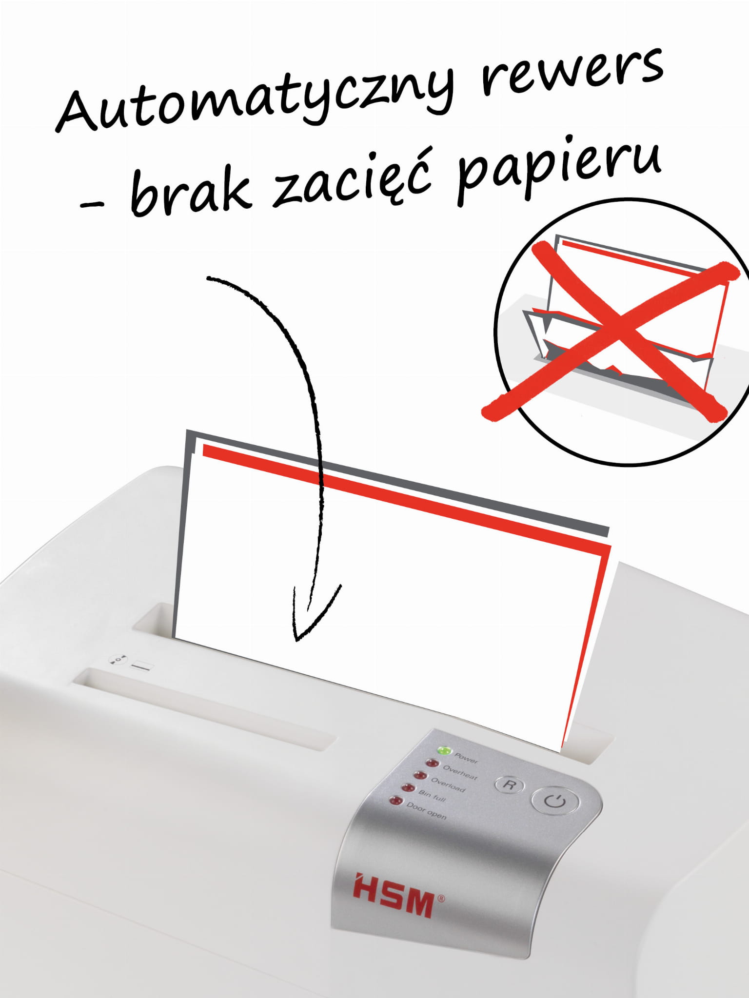 - Funkcja automatycznego wycofania pozwala uniknąć zacięcia papieru.