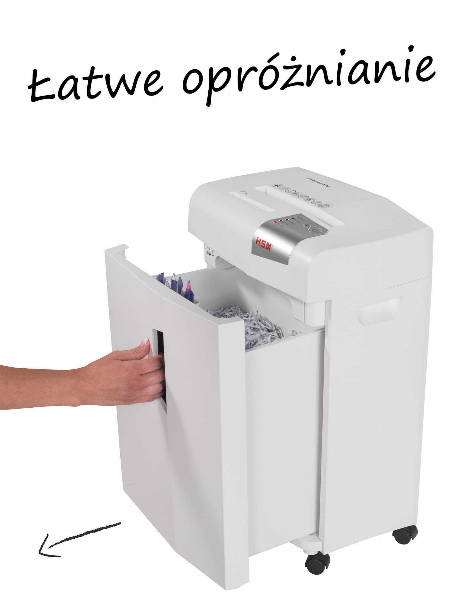 Funkcjonalna i przyjazna dla użytkownika. Ta niszczarka dokumentów na kółkach tnąca na ścinki wyróżnia się nowoczesnym wzornictwem oraz funkcją zapobiegania zacięciu papieru. Odpowiednia dla grupy do 5 osób.