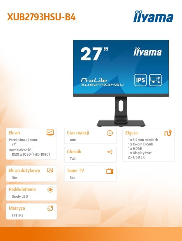 PROLITE XUB2793HSU-B4 27-calowy monitor z matrycą IPS i stopką z regulacją wysokości