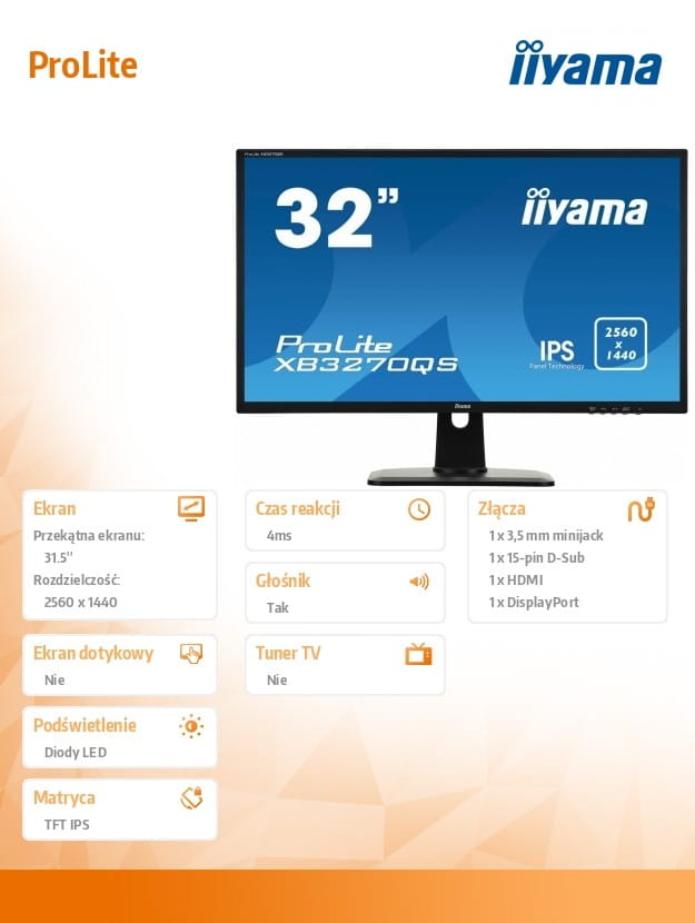 IIYAMA Monitor 32 cale XB3270QS-B1 IPS, WQHD, HDMI, DP, PIVOT