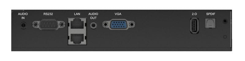 | Gniazda we/wy | 1 x 15-pin D-Sub • 1 x RJ-45 LAN • 1 x RS-232 (COM) • 1 x SPDIF out • 1 x USB (Type C) • 2 x 3,5 mm minijack • 3 x HDMI |