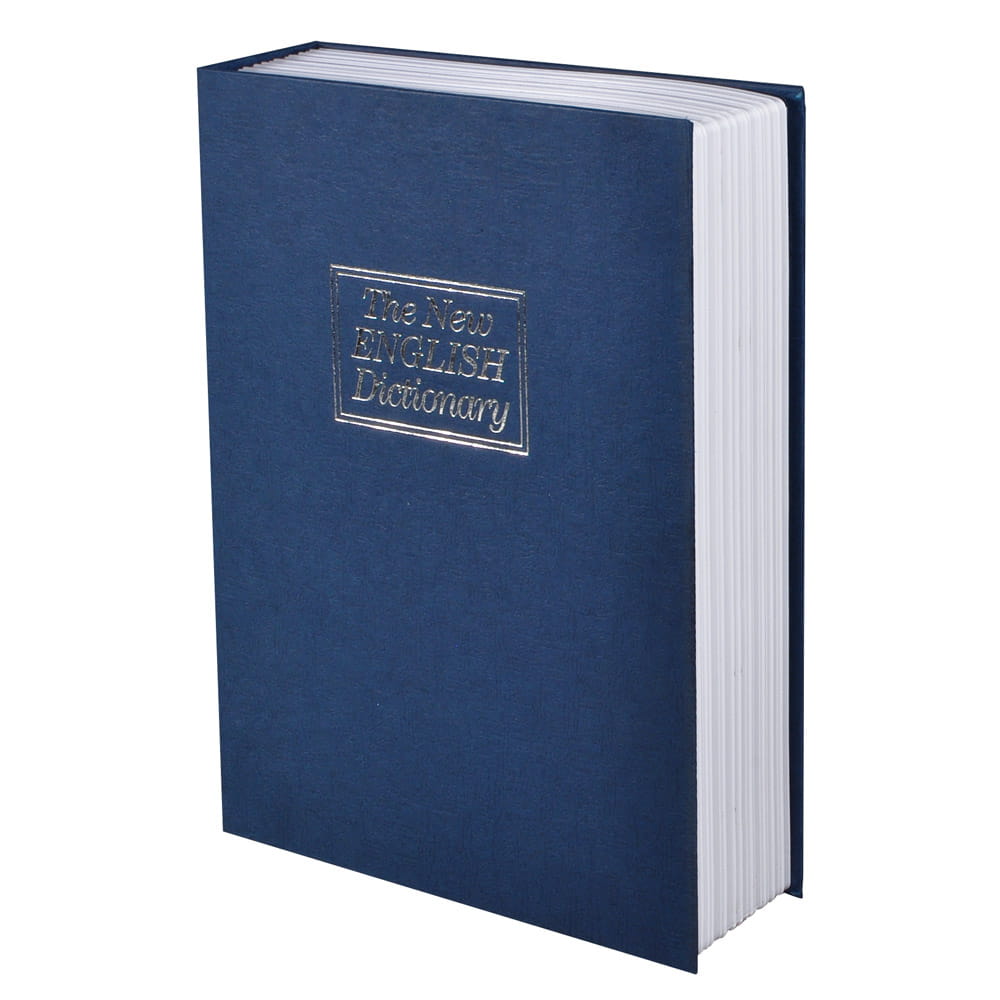 Metalowa kasetka wyposażona w zamek cylindryczny. Całość umieszczona w oprawie imitującej Słownik języka angielskiego.