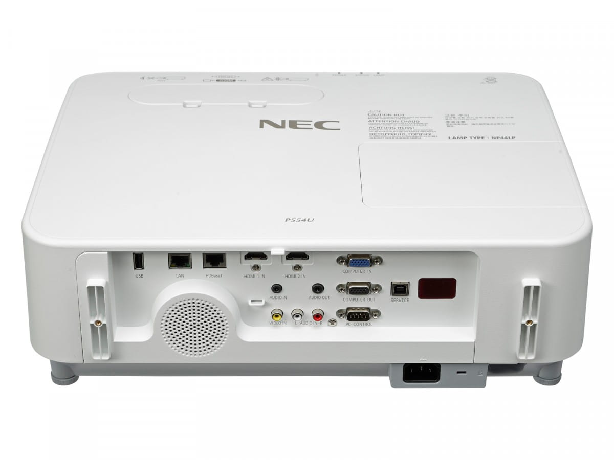 Projektor NEC P554U zapewnia jasność do 5300 ANSI lumenów na potrzeby pomieszczeń konferencyjnych i edukacyjnych. Oferuje bezproblemową pracę przez ponad 5 lat przy niskich kosztach utrzymania, cechuje się długim okresem eksploatacji lampy i jest wyposażony w opatentowane przez firmę NEC zabezpieczenie panelu LCD przed kurzem. NEC P554U doskonale zastępuje wcześniejsze modele dzięki tym samym opcjom montażowym, a szeroki zakres powiększania ułatwia dopasowanie projekcji do już zainstalowanego ekranu. Technologia LCD gwarantuje naturalne barwy o wysokim kontraście, a duży zakres przesuwania obiektywu w poziomie i w pionie przekłada się na znaczną elastyczność przy instalacji. Dzięki niewielkiemu zużyciu energii model NEC P554U cechuje się niskimi całkowitymi kosztami ponoszonymi przez właściciela (TCO) i pomaga ograniczyć emisje dwutlenku węgla.