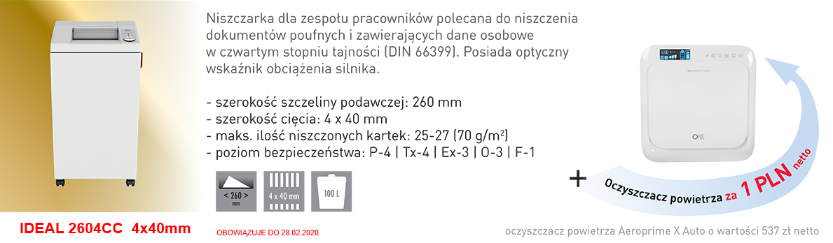 Niszczarka IDEAL 2604 CC 4x40mm + olej gratis + 5 lat gwarancji