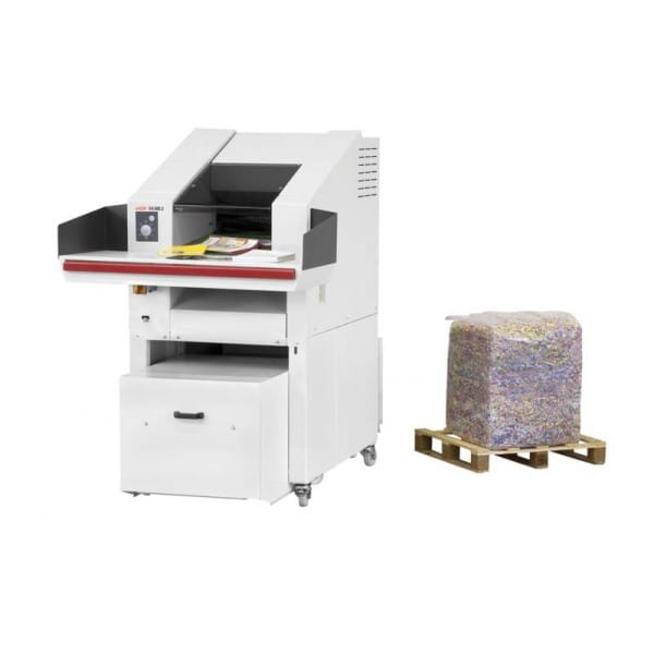 Niezwykle wydajna niszczarka dokumentów z podajnikiem taśmowym w połączeniu z prasą belującą (FA 500.3 i KP 80). Pobór materiału do zniszczenia z obszernego blatu podawczego za pośrednictwem elektrycznie napędzanego podajnika taśmowego. Wielofunkcyjna klawiatura sterująca z funkcją pracy ciągłej i cofania, a także funkcją automatycznego cofania w przypadku wykrycia zacięcia papieru. Zintegrowana, automatyczna olejarka zespołu tnącego. Awaryjna szyna zatrzymująca z przodu blatu podawczego zwiększająca bezpieczeństwo użytkownika. Fotokomórka pozwalająca automatycznie sterować procesem zgniatania. Jednoczesne niszczenie i zgniatanie. Belownica z otworem podawczym/klapą rewizyjną na dokumenty niewymagające niszczenia i kartony. Materiał jest zgniatany bezpośrednio w worku odbiorczym. Produkt niemiecki.